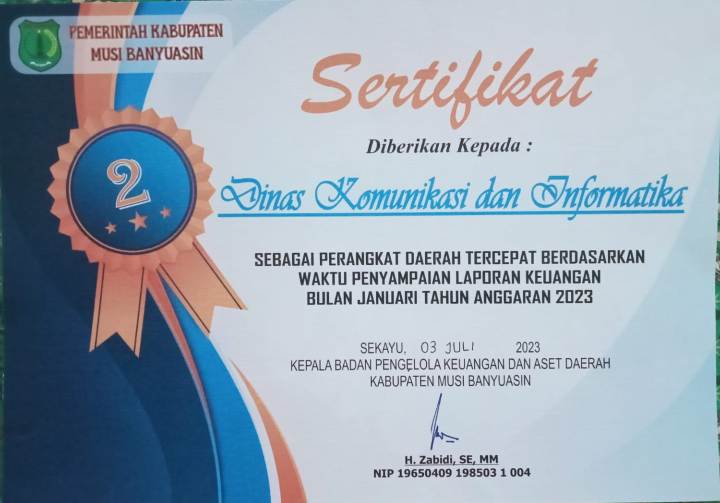 Kepala BPKAD Muba H.Zabidi, SE,MM juga menyampaikan apresiasi bahwa dinas kominfo meraih prestasi tercepat kedua dalam penyampaian laporan keuangan SKPD, yang pertama diraih badan penanggulangan bencana daerah. Laporan keuangan adalah salah satu parameter kinerja terutama dalam akuntabilitas pertanggung jawaban kepada publik.