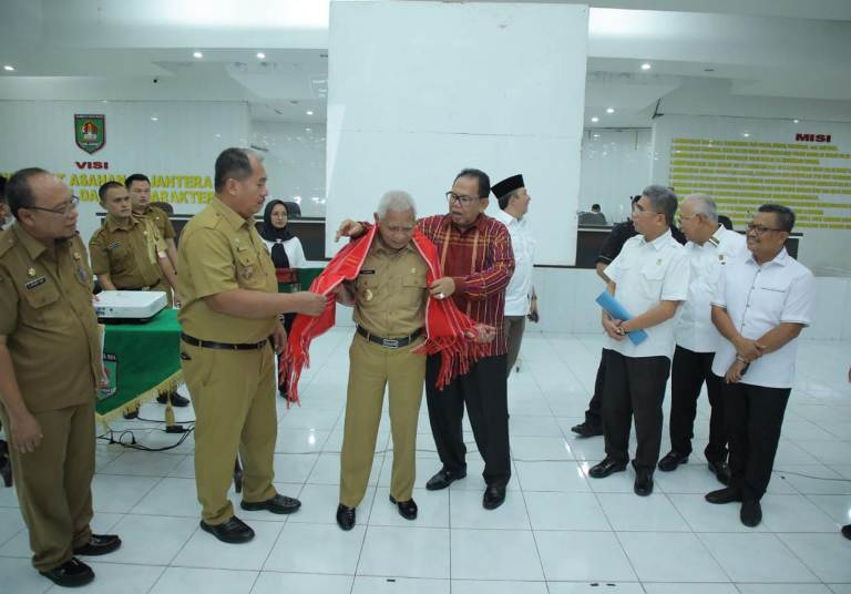 Asahan, AkselNews.com – Bupati Asahan H. Surya bersama dengan Wakil Bupati Asahan Taufik Zainal Abidin Siregar menyambut kedatangan Badan Anggaran DPRD dan TAPD Provinsi Sumatera Utara (Provsu) dan saling bertukaran cinderamata. Penyambutan itu berlangsung di Aula Melati Kantor Bupati Asahan, Senin (03/04/2023).