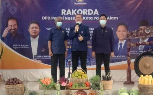 Pagaralam, Akselnews.com – Pada Rapat Kordinasi Daerah (Rakorda) partai NasDem yang dilaksanakan di aula Villa MTQ Gunung Gare, Selasa (15/6/2021), Walikota Pagaralam Alpian Maskoni yang disematkan sebagai kader Partai NasDem.